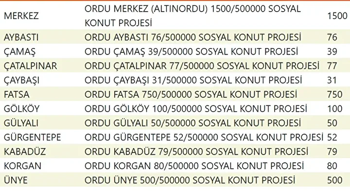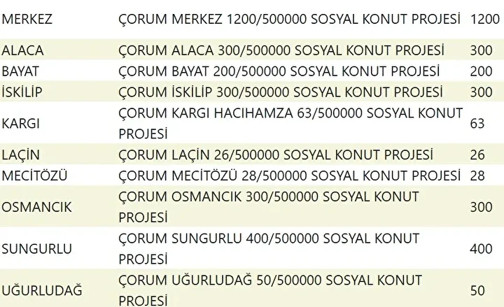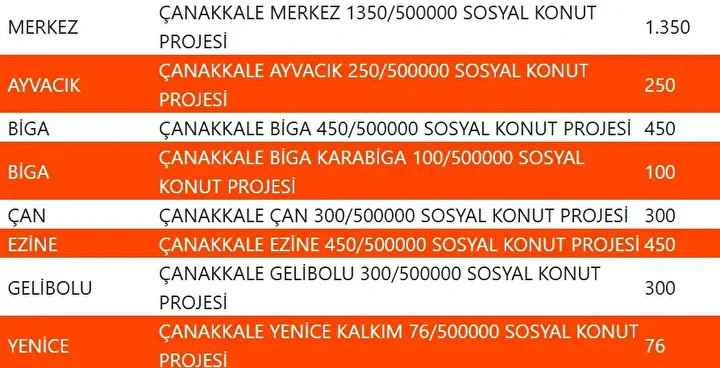 Projede en fazla konutun yapılacağı iller İstanbul, Ankara, İzmir, Bursa ve Konya olarak kayıtlara geçti. Bu doğrultuda 81 ilde 500 bin konutun yükseleceği ilçeler de netleşti.