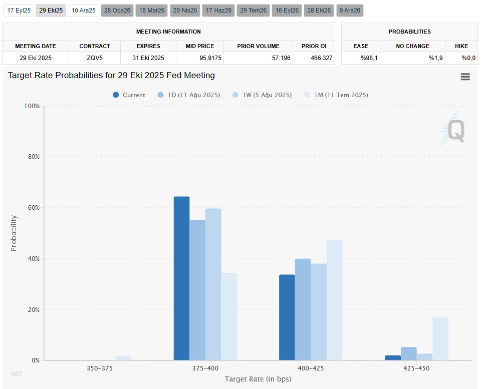 Ekim ayında Fed’in faiz indirimi gerçekleştireceğine ilişkin olasılığı yansıtan bir grafik şu şekilde paylaşıldı: