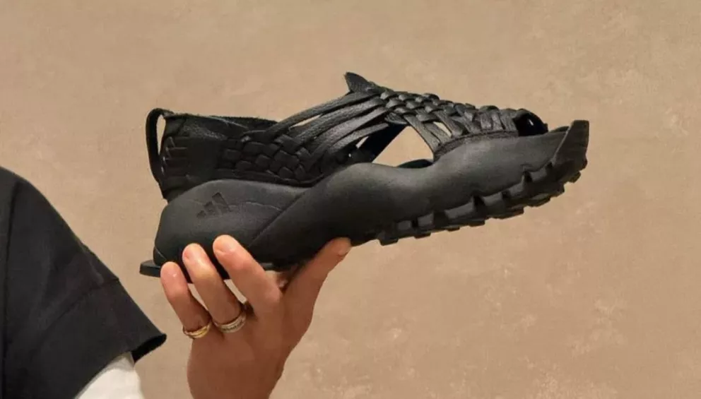 Ayakkabı, 1990’ların Adidas yürüyüş ayakkabısından alınan kalın siyah taban ve Meksika’nın Oaxaca kentinde Zapotek zanaatkarları tarafından yapılan geleneksel sandalet huarache’ye benzeyen dokuma siyah üst kısımdan oluşuyor.
