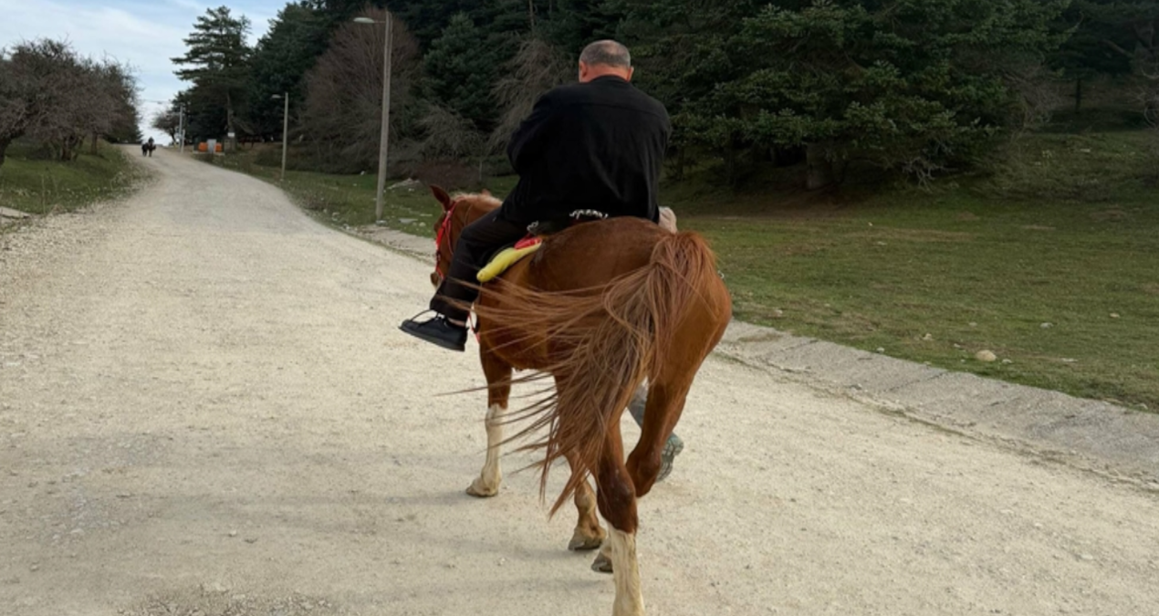 Manisa’nın Yunusemre ilçesinde yaşayan Selçuk Fidan (46), hafta sonu ailesiyle gittiği Bolu’da bindiği at, huysuzlanıp koşmaya başlayınca büyük panik yaşadı. Fidan’ın yaklaşık 300 metre sonra otlamak için duran attan atladığı anlar, cebindeki cep telefonuyla kaydedildi.