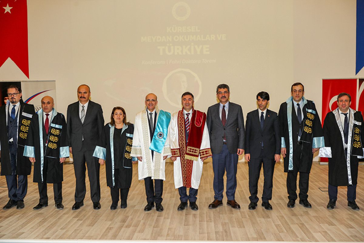 Hazine ve Maliye Bakanı Mehmet Şimşek, Batman Üniversitesi Fen Edebiyat Fakültesi Konferans Salonu’nda düzenlenen “Küresel Meydan Okumalar ve Türkiye” konulu konferansta yaptığı konuşmada, fahri doktora ünvanının baba ocağındaki üniversiteden gelmiş olmasının kendisi için çok değerli olduğunu söyledi.